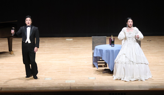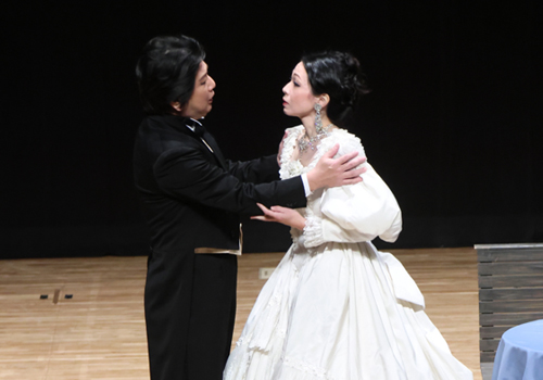 ヴィオレッタは社交界を離れ、パリ郊外の家でアルフレードと静かに幸せに暮らしていた。そこへアルフレードの父ジェルモンが訪ねてくる。