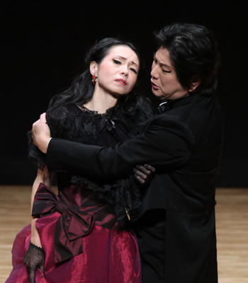 ヴィオレッタの娼婦という過去が娘(アルフレードの妹)の縁談に差し障りとなるので別れてほしいとヴィオレッタに迫る。